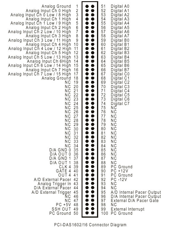 6. Connector pin-out for PCI-DAS1602-16 A/D card