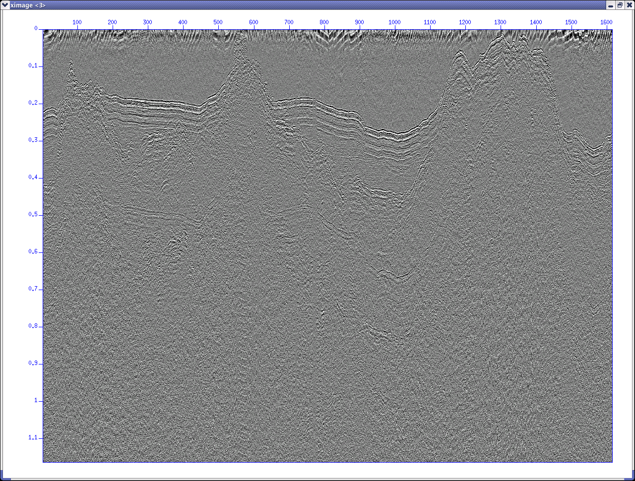 Plottene over er fremstilt ved hjelp av Seismic Unix (credits SU wizard Bent Ole Ruud). Her er kommandoene som ble benyttet (dette er en listing generert vha. Linux history kommando - nummeret til venstre må lukes vekk selvfølgelig). Husk at det er blandet data fra to ulike mottakere i SEG-Y filene (fra mini-streamer og fra GeoPulse Receiver). For å skille disse datasettene fra hverandre brukes suwind kommandoen. Det var en feil i programmet som samlet inn data - endel traseheader parametre i SEG-Y filen ble ikke brukt rett, se hvordan traseheaderne skal være her. Derfor må suwind gis spesielle parametre, se kommando historikk. Feilen er rettet slik at den ikke påvirker fremtidig innsamling.