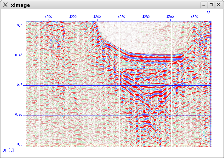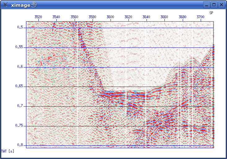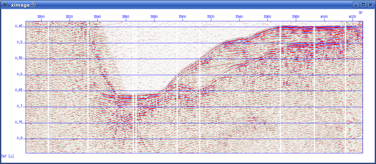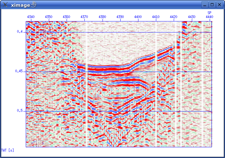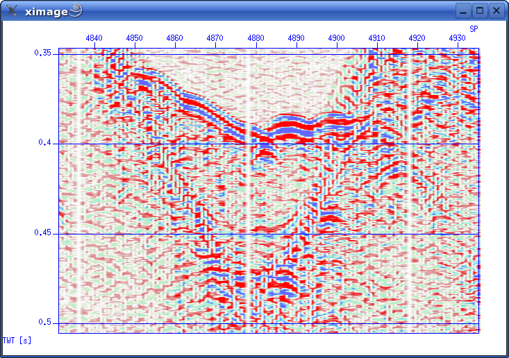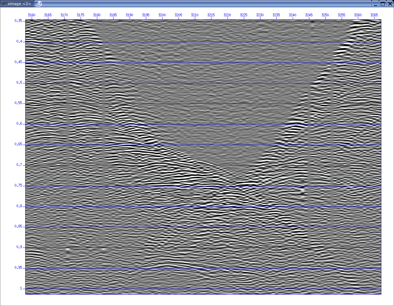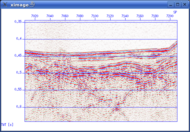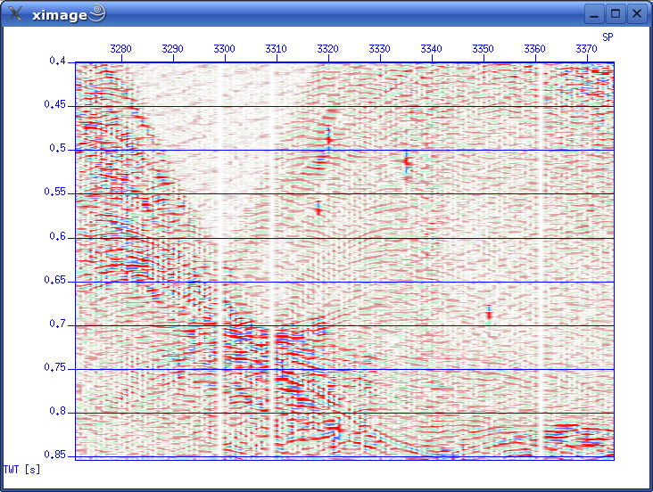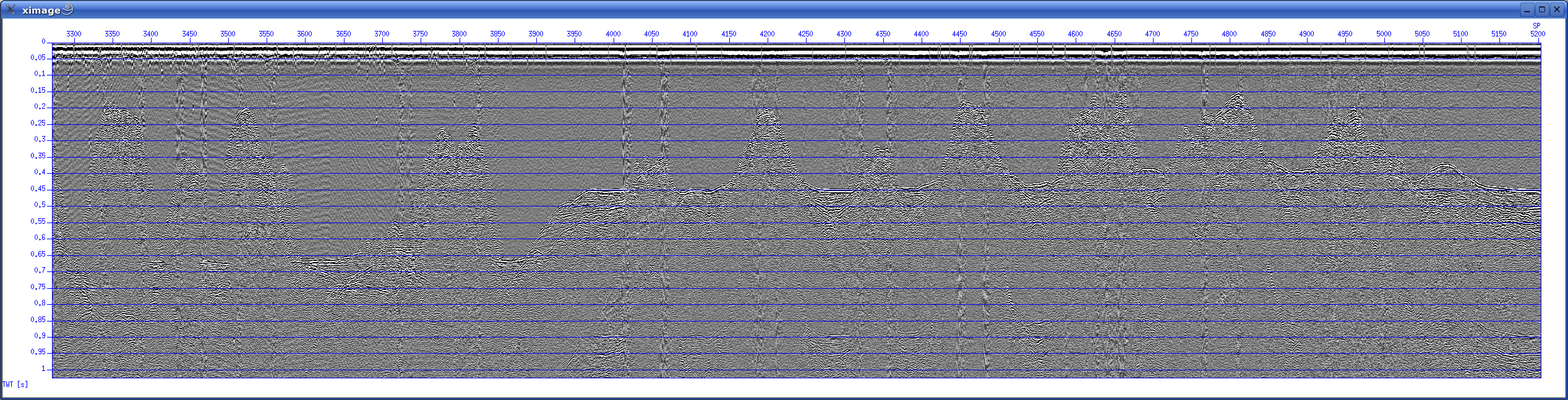 In order to convert latitude and longitude coordinate pairs to UTM, we must first convert the (d)ddmm.mmmm to decimal degrees, i.e. (d)dd.dddddd. This is accomplished in the Decideg(t) function of this Python program. Note the assumption made - that latitudes are north of equator, and longitudes east of the Greenwich meridian; decimal latitudes south of equator and longitudes west of Greenwich meridian are normally expressed as negative numbers. Next step is the Latitude/Longitude to UTM conversion. Here we use a Python library called LatLongUTMconversion. The library must be downloaded and unpacked. The code can either be included in your own programs, or installed on your computer (assuming Linux, see readme file). It provides a function LLtoUTM(ReferenceEllipsoid, Lat, Long) that takes the reference ellipsoid (in our case WGS-84 = 23), and Lat/Long, in decimal degrees, as input parameters. Output is a 3-tuple consisting of UTMZone, UTMEasting and UTMNorthing. The conversion to shotpoint file is done in line 20-23 in this program. Reading and processing SEG-Y files from the GEODE seismograph.Seismic data is commonly stored in SEG-Y format. We use an open-source processing package called Seismic Unix to process the seismic files. This package can be installed on any Linux box (the link provides a quick install section). First we convert the SEG-Y file (here 3271.sgy) to Seismic Unix *.su format, using the command: segyread tape=3271.sgy endian=0 conv=0 | segyclean > 3271.su Use endian=0 on a little-endian CPU (like PC); conv=0 as floating-point conversion from IBM to IEEE-format is not needed in this case (see also the Data sample format code, byte # 3225 & 3226, in the SEG-Y binary header - its interpretation is described on page 6 in the SEG-Y standard, Rev 1.) First take a look at which trace headers are in use, and their min/max range, by using the surange command: surange < 3271.sy 3866 traces: fldr=(3271,5203) tracf=(1,2) trid=1 nvs=1 nhs=1 scalco=1 gx=(0,1) counit=1 ns=4096 dt=250 lcf=50 hcf=1000 year=6 day=45 hour=(9,11) minute=(0,59) sec=(0,59) timbas=1 The streamer has two channels. We only use the first. To select data from the first channel and display these, use: suwind key=tracf min=1 max=1 < 3271.su | suximage perc=95 key=fldr grid1=solid d1num=0.05 label1="TWT [s]" label2="SP" & On-line QC display of data, on Linux PCOn the GEODE laptop, a Python program monitors the SEG-Y data directory and informs other units on the network that new data are available. This monitoring program is described here. A Linux machine with Seismic Unix can receive this information and display new data in various ways. Data reception is described here. Seismic QC displays are described here. |