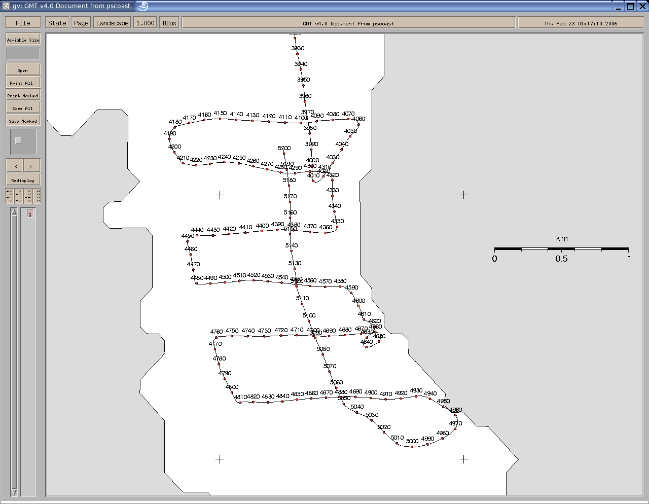 2. Shotpoint mapsRaw navigation log files converted by a script to this format - parameters are: #SP, Date, Time hhmmss (UTC), Latitude, Longitude, Easting, Northing, UTM Zone .. 3159 14.02.2006 093536 60.512567 5.271720 295344.9 6714295.9 32V 3160 14.02.2006 093540 60.512590 5.271562 295336.4 6714298.9 32V 3161 14.02.2006 093544 60.512610 5.271402 295327.7 6714301.7 32V .. Latitude, longitude data from Garmin GPS-35. Datum: