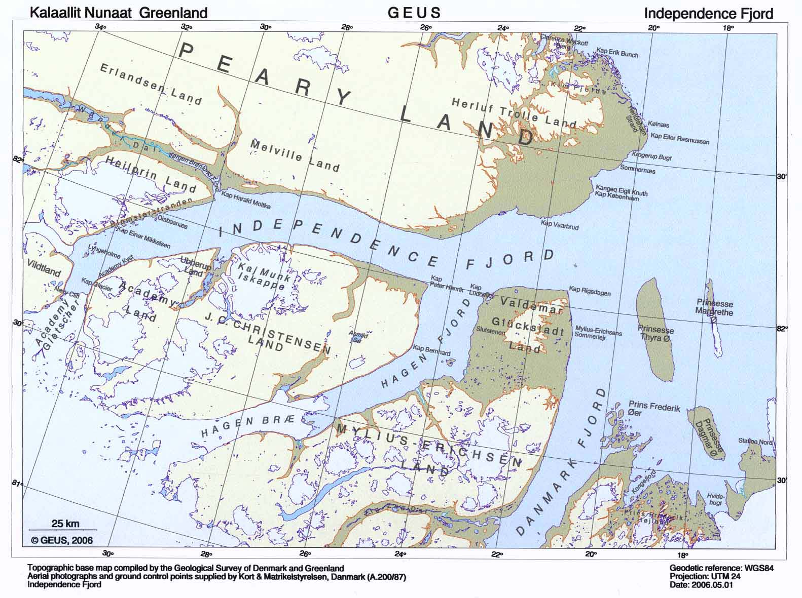 Map of Independence Fjord - click to enlage.