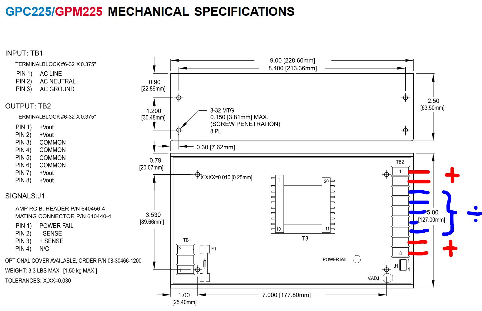 Terminal outputs on GPC225 Power supply. From datasheet (PDF).