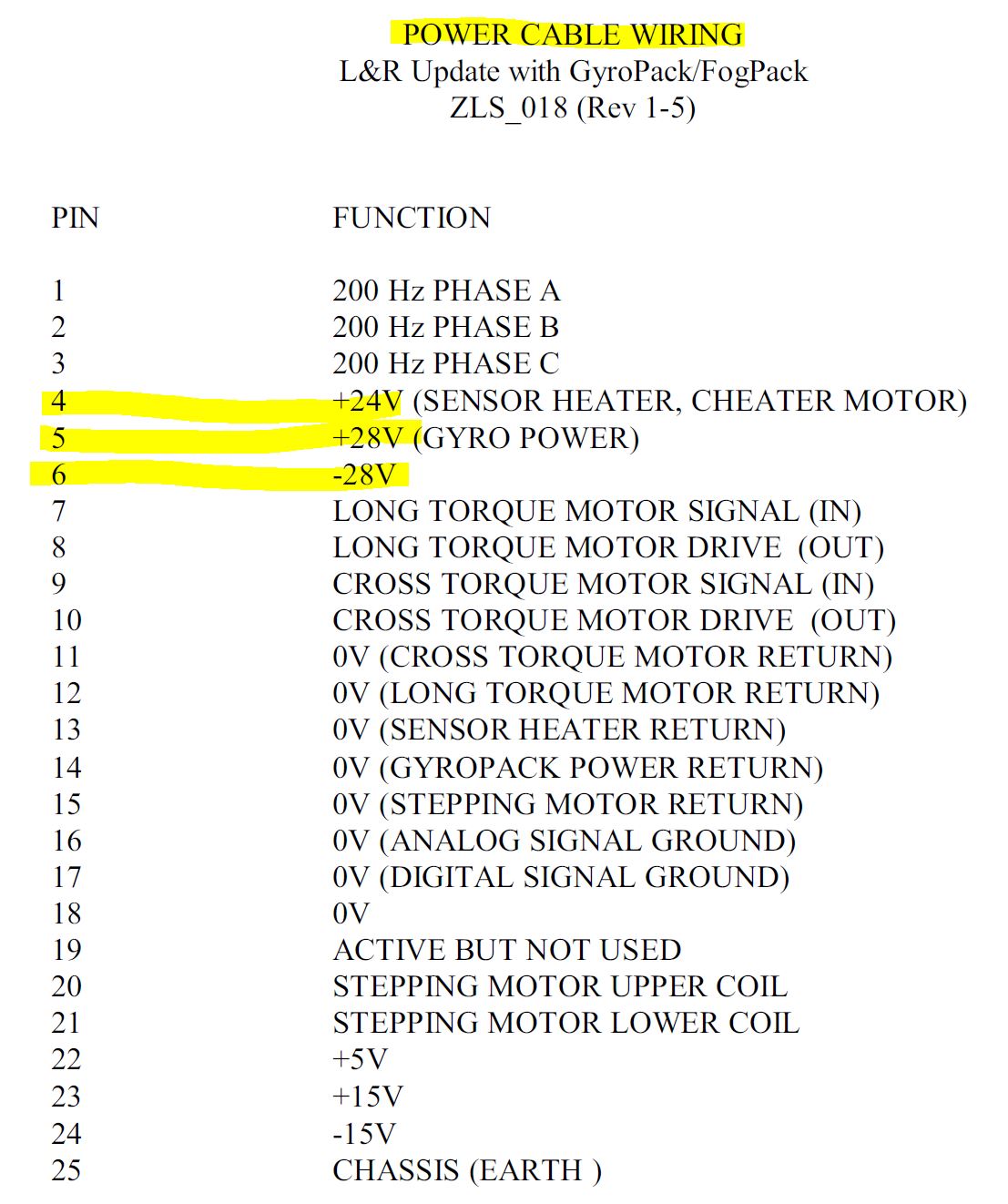 - Pin 5: +28Vdc to Gyro: This signal is switched ON/OFF so you cannot measure resistance to 28Vdc output on power supply.