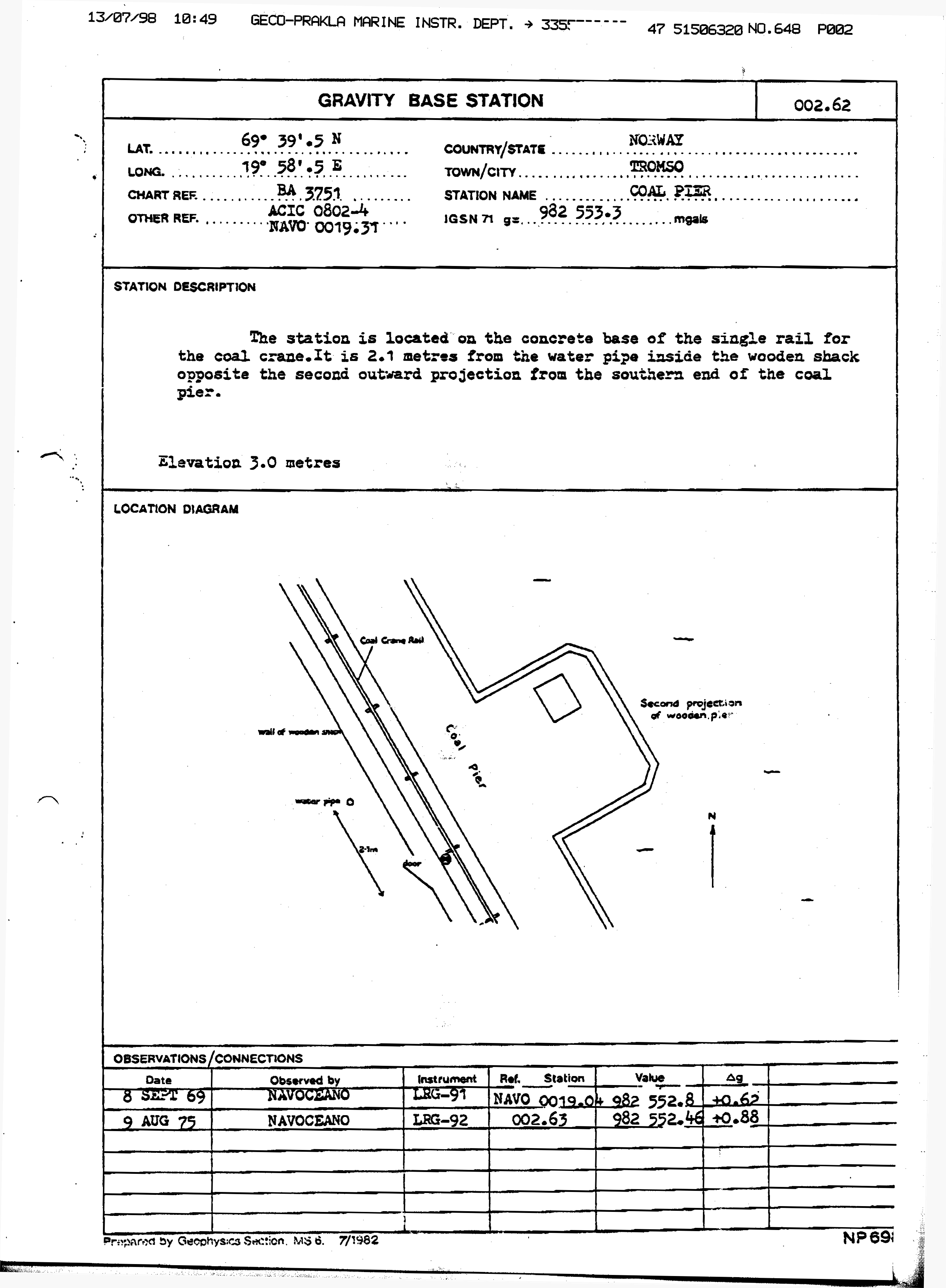 8 sep 2003 by B.G.H, NMA: Tromsø: Det eneste sikre punktet i Tromsø for tiden er målepunktet ved det gamle tårnet, sjekket det senest i år. Punktet ved havna ble ødelagt ved ny trapp i fjor, da tollvesenet forlot bygningen og andre overtok. |