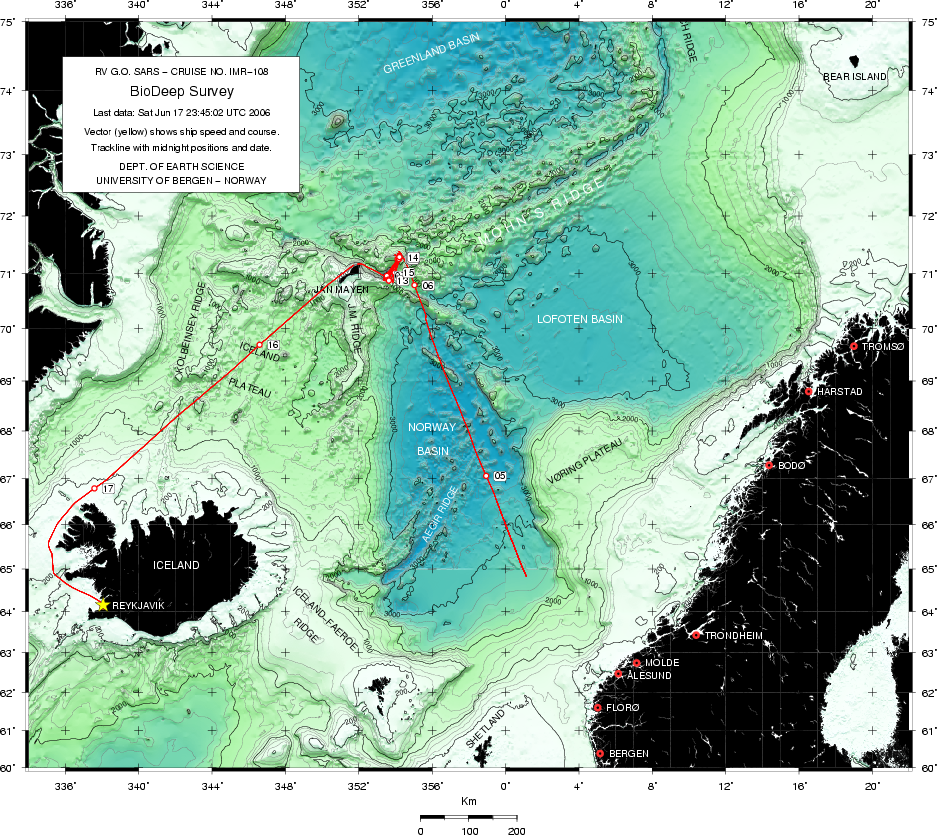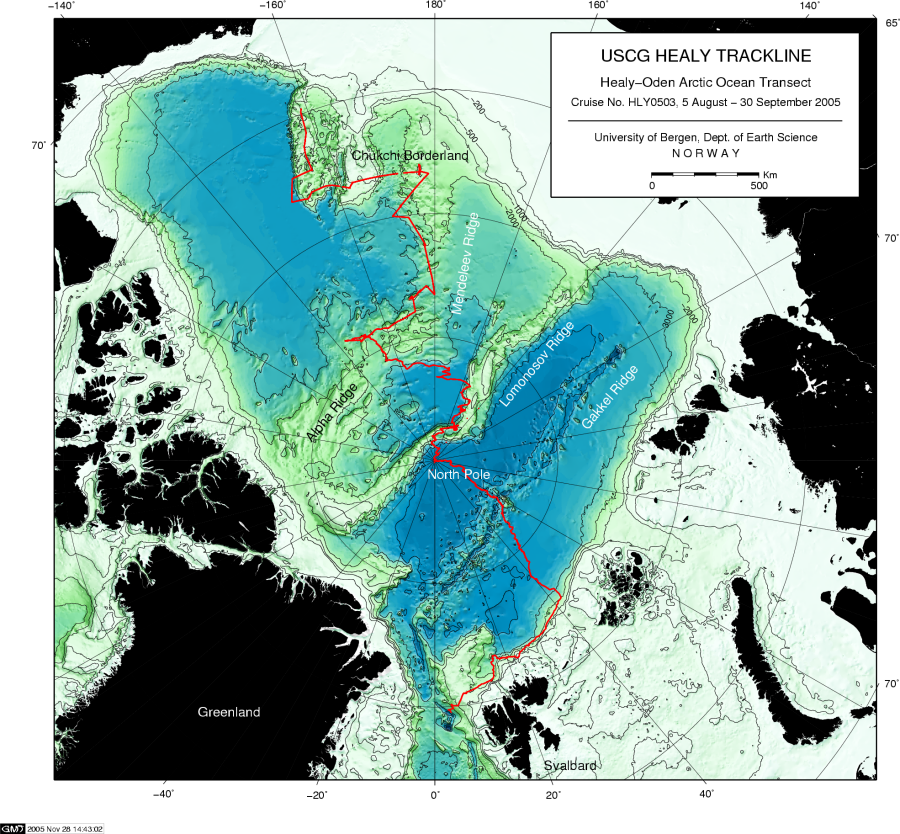 Bathymetry: IBCAO ship track bathymetry grid for the arctic regionsThe IBCAO ship track bathymetry grid for the arctic regions down to 64N is released in version 1.0. The data will provide both accuracy and resolution for the northern seas. From their web-page: Project Overview: The goal of this initiative is to develop a digital data base that contains all available bathymetric data north of 64 degrees North, for use by mapmakers, researchers, and others whose work requires a detailed and acurate knowledge of the depth and the shape of the Arctic seabed. From the technical reference guide: A coastline definition was achieved by using the World Vector Shoreline (WVS)database in all areas except Greenland and northern Ellesmere Island,where an updated coastline was available from the Danish National Survey and Cadastre (KMS),and Kvitøya were GTOPO 30 (described below)was used to delineate the coast. Gridded sources Land relief was derived largely from the US Geological Survey's topographic model GTOPO 30,with the exception of Greenland where the topographic model developed by KMS was used [Ekholm ,1996 ]. (Note: due to this, there will be a misfit with the GMT coastline data base for Greenland). File: /gmtdata/bathym/ibcao/IBCAO_1.0.grd