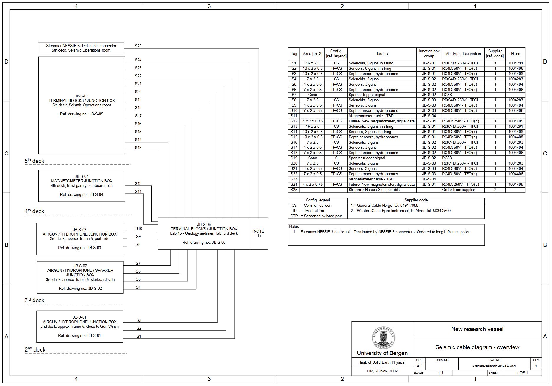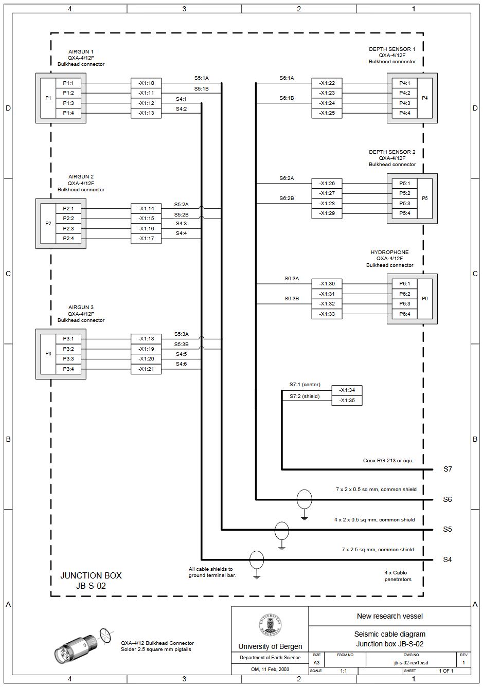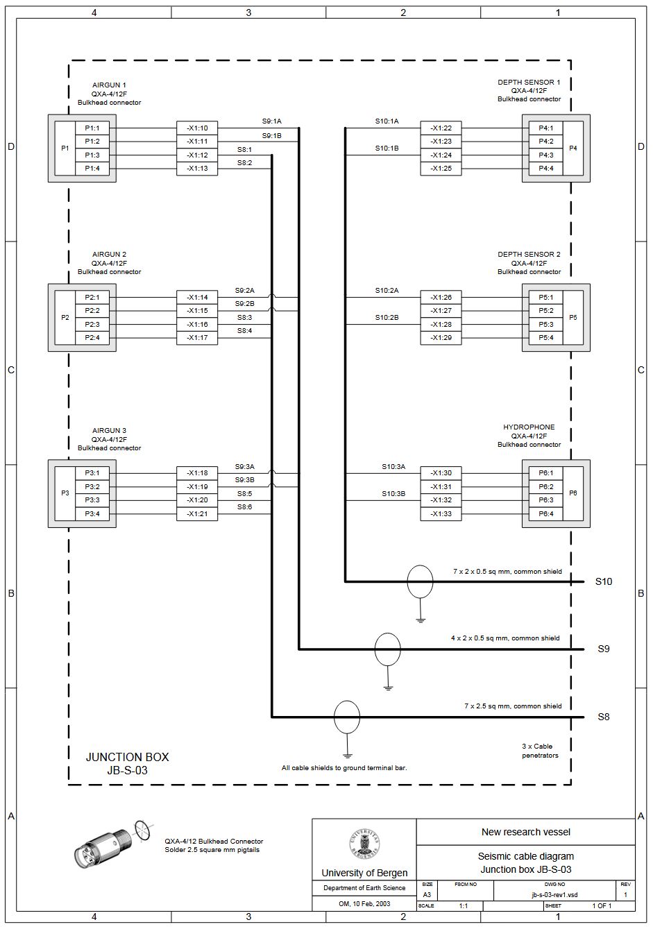 TEGNINGER, KABLING FOR GEOFYSISK INSTRUMENTERING