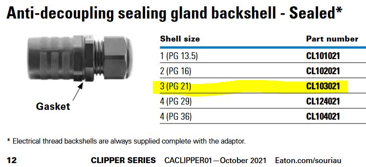 - Anti-decoupling sealing gland backshell - Sealed -- Shell size 3 (PG21): CL103021