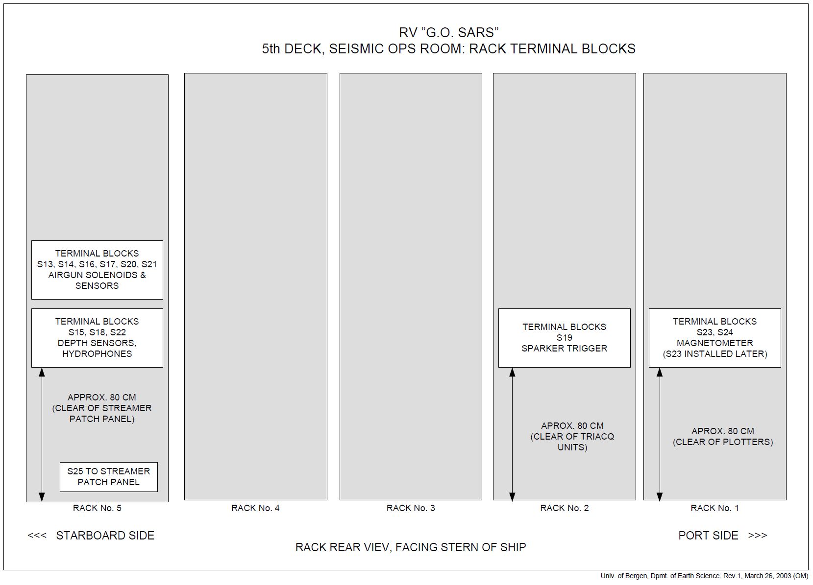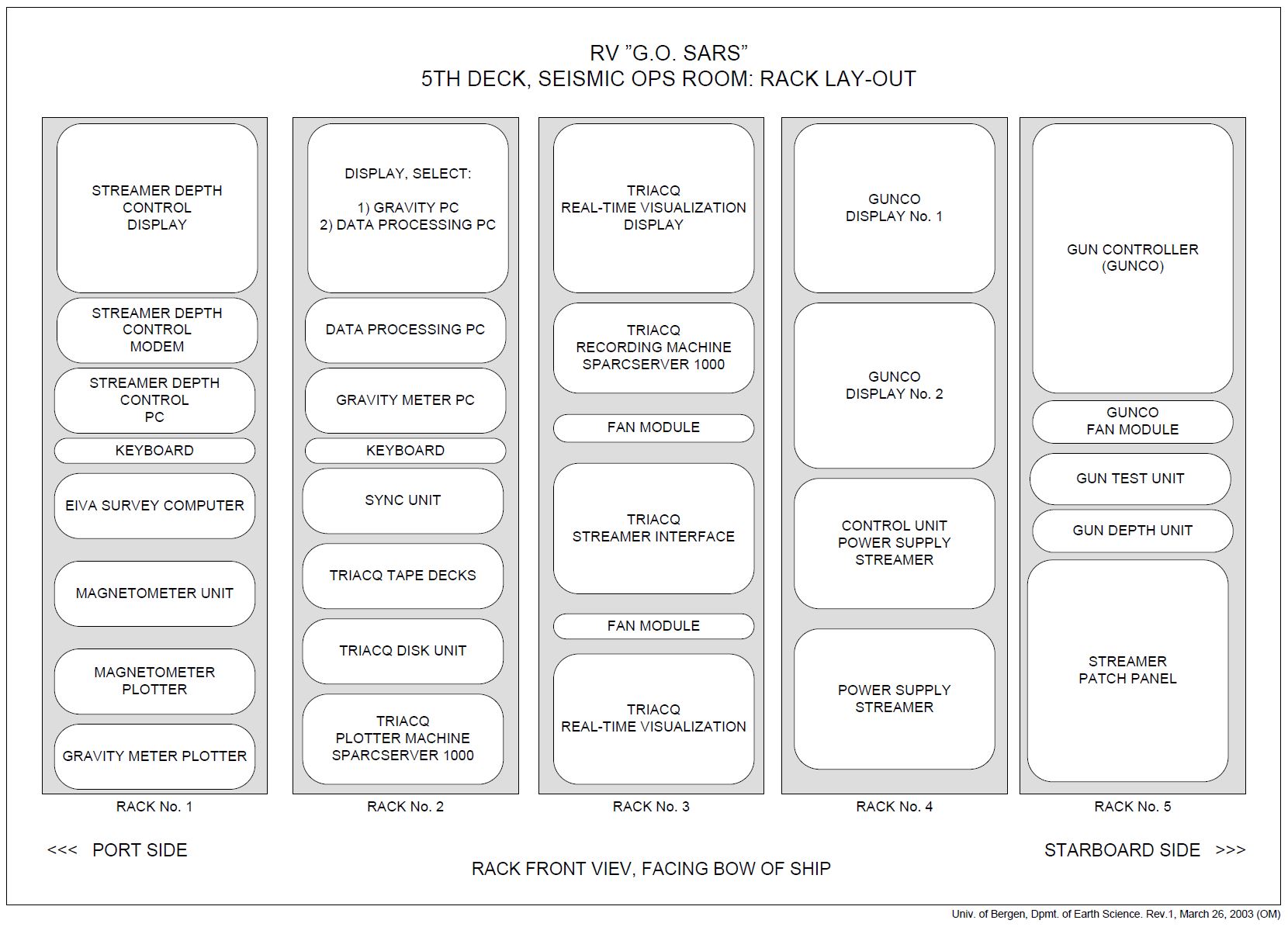 | Rack layout, 5th deck, seismic ops room