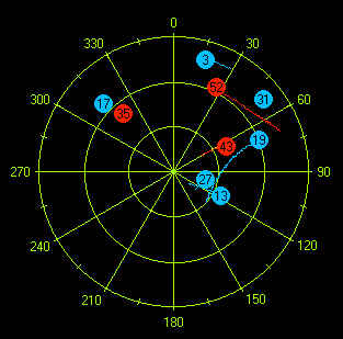 ![]() Fig 2. Skychart. Ashtech GG24 mottaker Forklaringer: