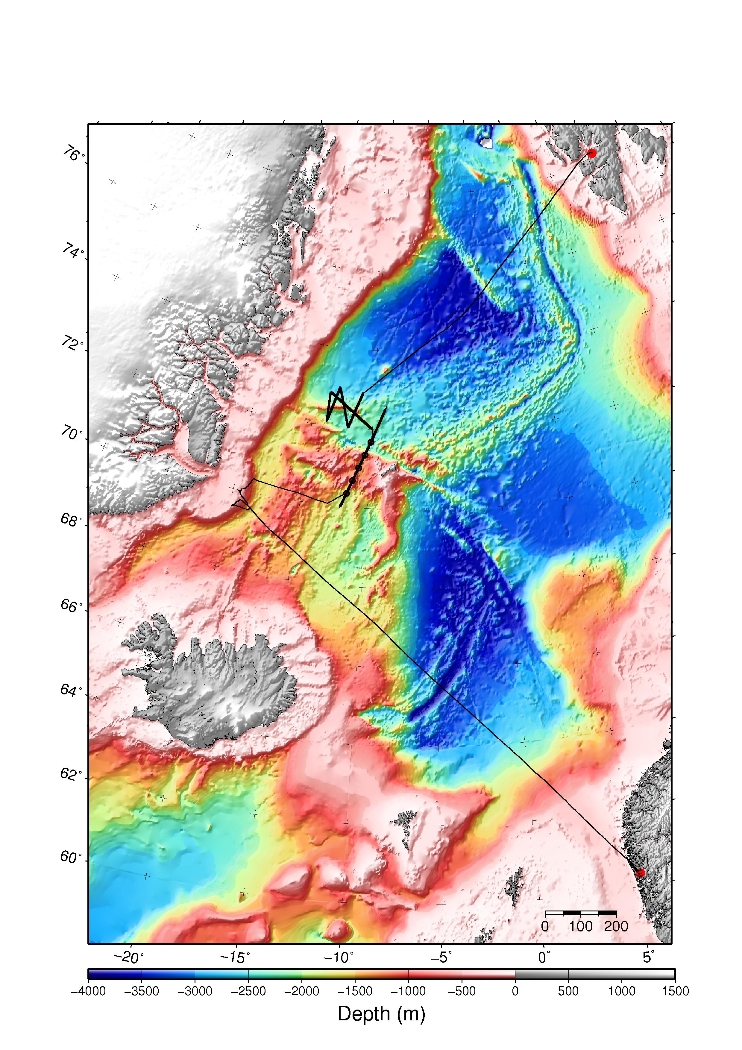 UKOOA P1-90 NAV DATA FILESUTM Zone, reference point on vesselAll UTM data are relative to UTM Zone 27. All coordinates are also relative to the position of the gravitymeter onboard the ship. ![]() Gravitymeter is placed at frame 40. Frame distance is 0.6 m. Thus, gravitymeter is 40 x 0.6 m = 24.0 m from the stern. Airgun offset distanceAirguns are positioned 48 meter behind the stern. We have to add offset between gravitymeter and stern, to obtain the total offset between source and positions given in navdata files. Thus, total offset between source and positions given in nav data files is: 48 m + 24.0 m = 72.0 m. UKOOA P1/90 navdata formatOutput from nav data processing should be in UKOOA P1/90 format, slightly modified to accomodate three decimals in time value. The UKOOA P1/90 format specification can be downloaded from SEG. It's a fixed-position format without any <SPACE> or <TAB> delimiters between fields, so it can be hard to read. However, by inserting appropriate comment field in the header, it can be made much more legible, as this example shows. The first part is the header; the individual shotpoints are at the end (six lines) : H0100 SURVEY AREA ISFJORDEN, SVALBARD H0101 SURVEY DETAILS SVALEX-2005 H0102 VESSEL DETAILS R.V. HAAKON MOSBY H0104 STREAMER DETAILS 240 CH GECO NESSIE-3 H0200 SURVEY DATE AUGUST - SEPTEMBER 2005 H0201 FILE CREATED 16-Jan-2006 H0202 FILE VERSION UKOOA P1/1990 H0300 CLIENT SVALEX-2005 H0400 GEOPHYSICAL CONTRACTOR UNIVERSITY OF BERGEN, NORWAY H0500 POSITIONING CONTRACTOR N/A H0600 POSITIONING PROCESSING O.M. UNIVERSITY OF BERGEN, DEPT OF EARTH SCIENCE H0700 POSITIONING SYSTEM H0700 SURVEY COMPUTER SOFTWARE NAVIPAC, EIVA, DENMARK H0700 H0800 SHOTPOINT POSITION CENTRE OF SOURCE H1000 CLOCK TIME UTC H0900 OFFSET SHIP SYSTEM TO SP 70.0 M BEHIND H1200 SPHEROID AS SURVEYED A,1/F WGS-84 Spheroid 6378137.000 298.2572236 H1300 SPHEROID AS PLOTTED A,1/F WGS-84 Spheroid 6378137.000 298.2572236 H1400 GEODETIC DATUM AS SURVEYED WGS-84 H1500 GEODETIC DATUM AS PLOTTED WGS-84 H1700 VERTICAL DATUM SL : ECHO SOUNDER H1800 PROJECTION 001 UTM NORTHERN HEMISPHERE H1900 ZONE 33X NORTHERN HEMISPHERE H2000 GRID UNIT 1 METRE H2001 HEIGHT UNIT 1 METRE H2002 ANGULAR UNITS 1 DEGREES H2200 CENTRAL MERIDIAN 15 DEG E H2600 H2600 00011111111112222222222333333333344444444445555555555666666666677777777778 H2600 78901234567890123456789012345678901234567890123456789012345678901234567890 H2600 -NAME-><->---<-SP-><---LAT--><--LONG---><--EAST-><-NORTH-><-DEP><D><TIME>- SLine34-05 18781022.23N 141348.31E 482384.58677774.7 215.8242180734 SLine34-05 19781023.47N 141353.32E 482416.98677812.8 214.7242180755 SLine34-05 20781024.73N 141358.24E 482448.78677851.4 212.3242180816 SLine34-05 21781026.00N 1414 3.08E 482480.08677890.4 209.6242180837 SLine34-05 22781027.28N 1414 7.88E 482510.98677929.7 207.6242180858 SLine34-05 23781028.53N 141412.83E 482543.08677968.1 206.2242180919 UKOOA P1-90 navdata format structure. The shotpoint (SP) parameter, for instance, is located from column 20 to 25, as shown below. The two colomn numbering lines, together with the parameter name line, is an aid in determining the colomn position of the different parameters. These three "assist" lines are not common - they are only inserted by the software we use to generate UKOOA P1/90 files. +--------> Column 20 | | +---> Colomn 25 | | 222222 012345 <-SP-> 18 19 20 21 22 23 "OBS" modification of UKOOA P1/90 navdata formatOBS refraction surveys means that source (airguns on ship) and receivers (OBS placed on the bottom, or on land, as an extension of the profile) must maintain a common, accurate - to the nearest millisecond - time base. This is accomplished by special oven-controlled oscillators in the OBS instruments, and GPS locked clocks in land based instruments. On board the ship, the exact time of the shotpoint is recorded by two time-tagging systems operating in paralell (details provided in table of geophysical equipment above). The time field in the UKOOA P1/90 format only accomodates seconds without decimals. The format has been modified to permit storage of shot times with six decimal places, of which only the three most significant decimals are used. An example of modified file: H2600 FILE FORMAT MODIFIED TO INCLUDE SHOTPOINT TIME IN COLUMNS [7..19] H2600 H2600 00011111111112222222222333333333344444444445555555555666666666677777777778 H2600 78901234567890123456789012345678901234567890123456789012345678901234567890 H2600 <--SP TIME--><-SP-><---LAT--><--LONG---><--EAST-><-NORTH-><-DEP><D><TIME>- SSM-1 101921.956000 1632728.92N 74033.97E 732982.37045135.6 171.3297101921 SSM-1 102109.690000 2632728.28N 74019.50E 732783.87045101.1 172.4297102109 SSM-1 102251.455000 3632728.66N 740 5.07E 732583.57045098.3 176.4297102251 "EIVA" Survey Computer shot event log filesThe format of these shotpoint logfiles is as follows: Event Date Time Easting Northing St.d. Gyro Dal Dol Kp Object Data ----------------------------------------------------------------------------------------------------------- 000057 2010.06.02 02:51:41.914 0334654.77 07118140.71 00.90 038.1 00000.15 005.14 000.000 "H Mosby f " 3002.22 9449.08 52045.27 "" 01 000058 2010.06.02 02:52:59.662 0334792.73 07118285.63 00.80 037.7 00200.24 005.27 000.200 "H Mosby f " 3010.88 9448.82 52040.90 "" 01 000059 2010.06.02 02:54:19.285 0334928.16 07118432.47 00.80 037.6 00399.98 002.25 000.400 "H Mosby f " 3019.18 9449.93 52035.06 "" 01 000060 2010.06.02 02:55:36.205 0335067.61 07118575.91 00.70 037.9 00600.02 004.48 000.600 "H Mosby f " 3027.67 9451.44 52025.12 "" 01 Parameters are given in first line. Most are self-explanatory, except these: