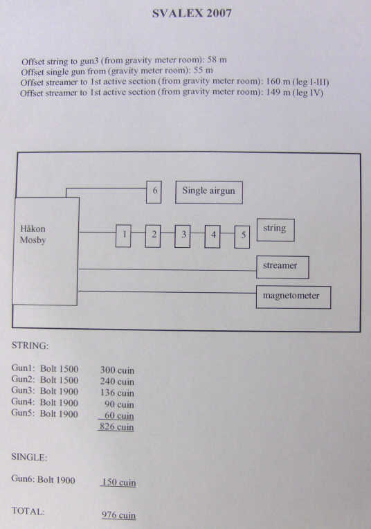 NAV. DATA, LOG FILESOffset distances / layout / gun array Streamer / guns target depth