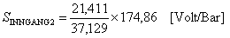 With 25 meter group length charge amp sensitivity is 174,86 V/Bar. If MUX Z3 input no. 2 is selected the sensitivity becomes: