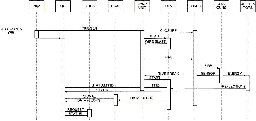 Streamer section nomenclatureAll Western-Geco streamer sections have their own unique identification code and serial number. The code consists of letters, and indicates the function and hardware arrangement of the section. ![]() Western-Geco Nessie-3 streamer section nomenclature Recording system