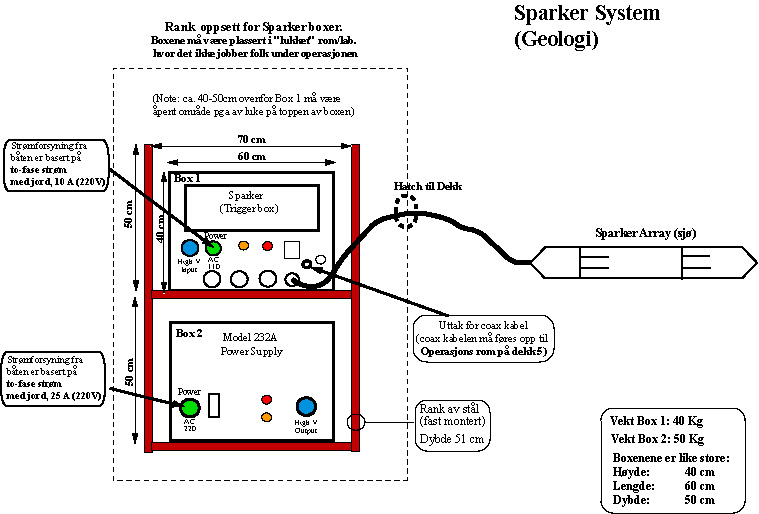 Tegning av rack oppsett for Sparker utstyr.