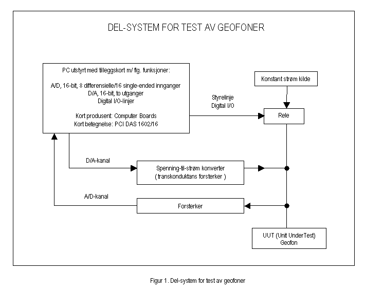 Den praktiske delen av fagprøven går ut på å konstruere et system for test av geofoner. Dette er en type "moving coil"-sensor hvor utgangssignalet er proporsjonalt med den relative hastighet mellom sensorens spole og magnet.