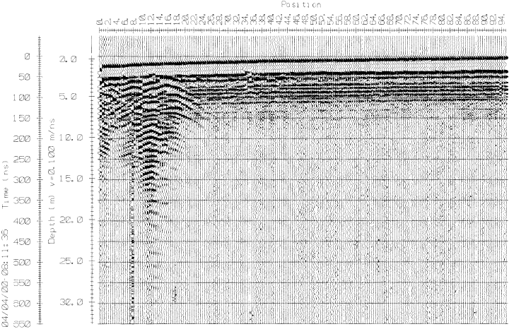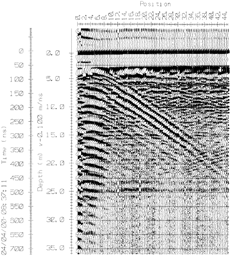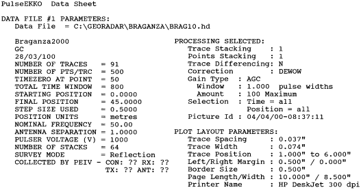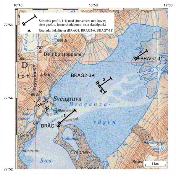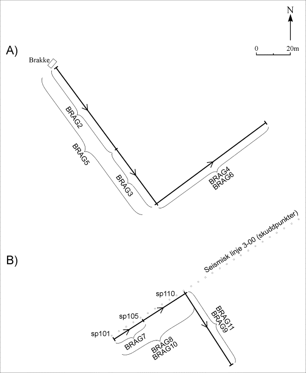 georadarprofiler (BRAG1 - BRAG11), men en total lengde på 570 m, samlet inn i