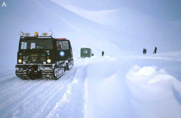 av utstyr/brakke med bandvogn fra Longyearbyen til Svea, kl.12.00-17.30. Reise