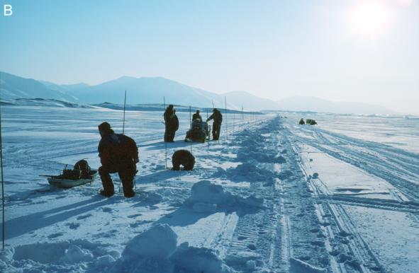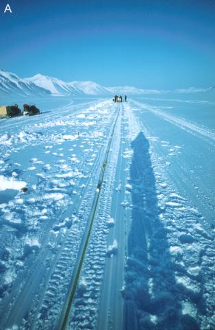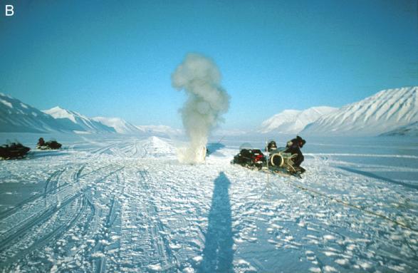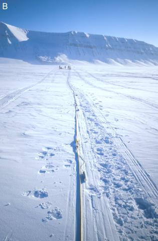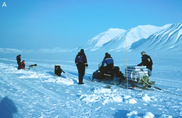 ved Universitetet i Tromsø (UiTø) utførte seismisk feltarbeid med snøkabel i