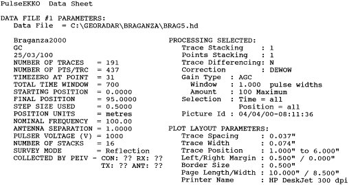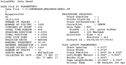 Utskrift av georadarprofiler (BRAG1 - BRAG11)