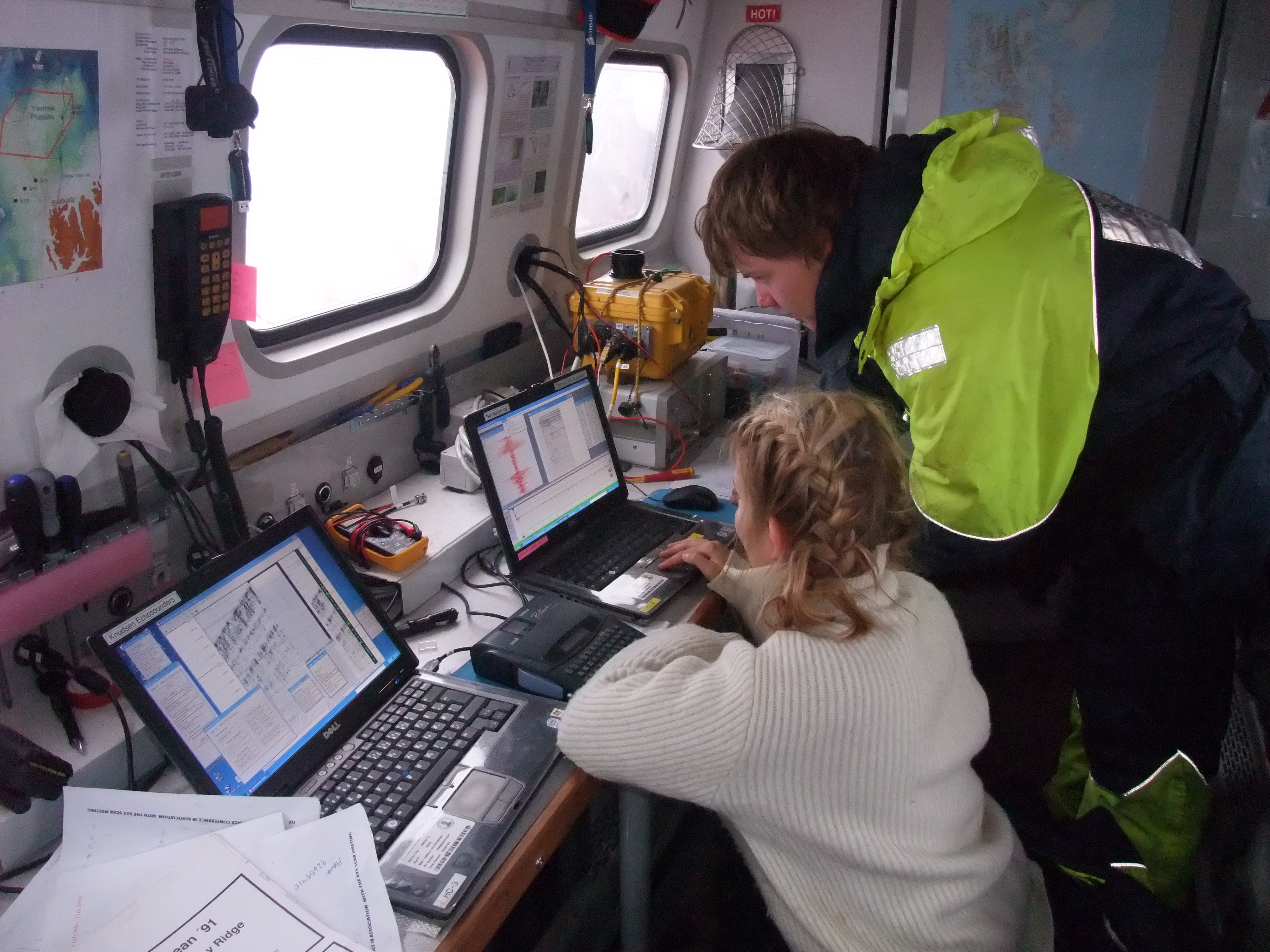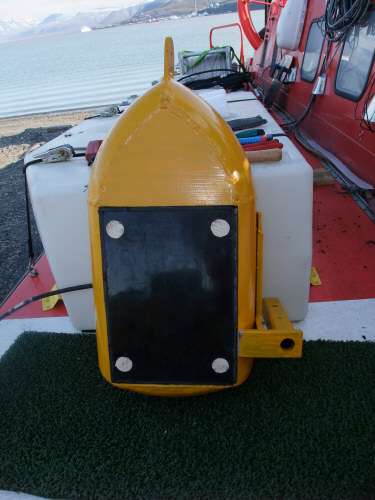 CHIRP SONARKNUDSEN ENGINEERING SONAR, MOD. CHIRP 3200The Chirp 3200 is controlled from a PC running the SounderSuite program. The 12kHz transducer is lowered over the side of an ice floe where the craft is parked or suspended below the hull for underway measurements.