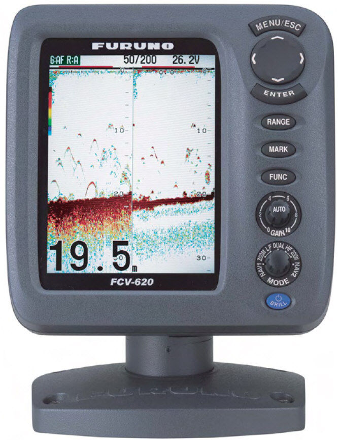 ECHO SOUNDER FURUNO FCV-620INTRODUCTIONThe vessel is furnished with echo sounder with portable transducer, intended for use when traversing open ocean areas. The vessel hull is of course not in contact with water when hovering, so the echo sounder transducer must be lowered into the water by other methods. The echo sounder outputs depth information, which is merged with latitude/longitude and stored on external logger. Echo sounder information: