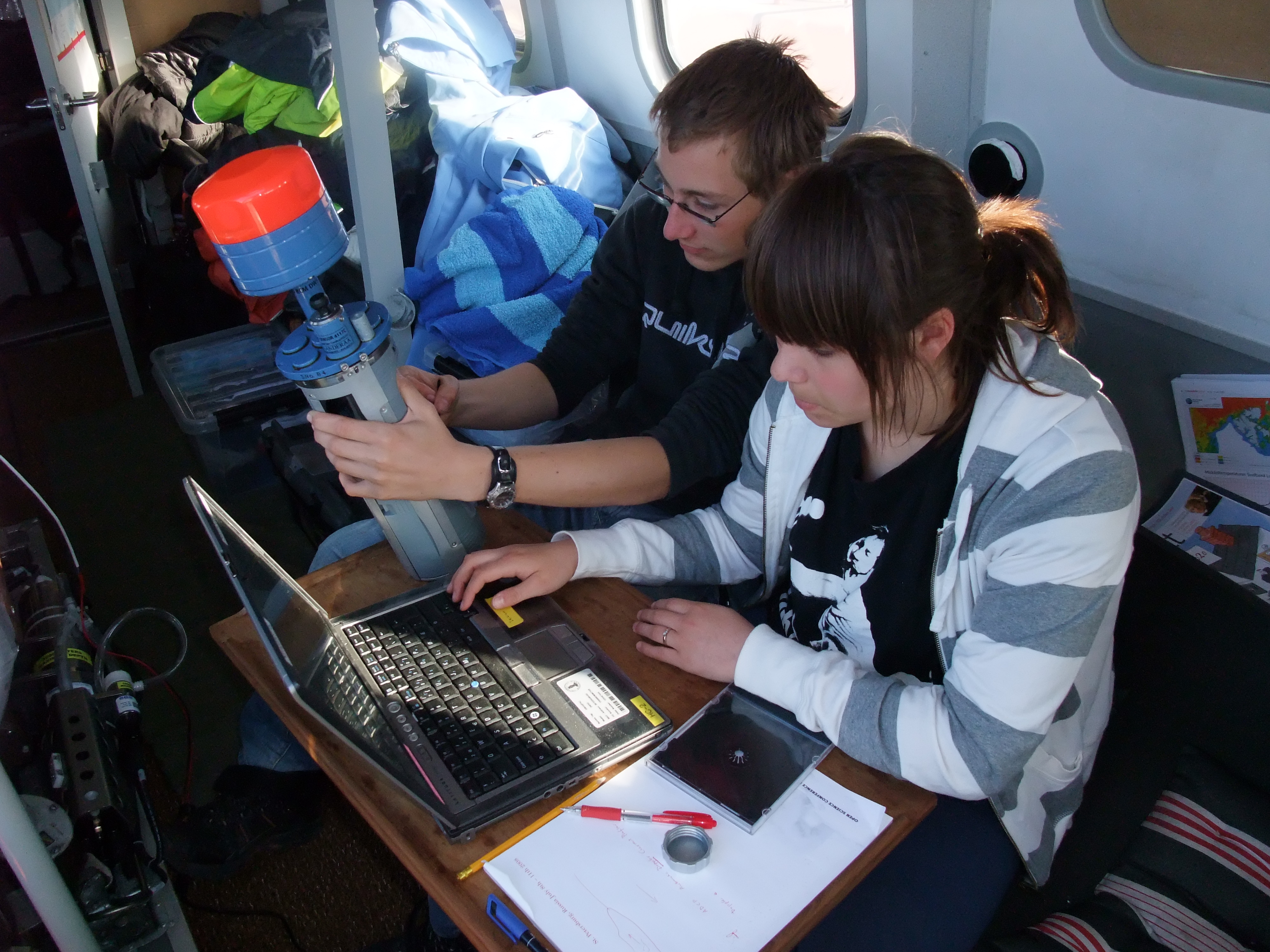 OCEANOGRAPHYWater masses and mixtures water masses are characterized by their temperature and salinity. The conductivity, temperature and depth (CTD) probe is the most important instrument to derive basic water mass properties. Sabvabaa has a Sea Bird SBE 19Plus- Version 2 SeaCat profiler with a titanium housing depth rated to 7000 meter and a pressure sensor rated to 3500 meter depth. The CTD winch has 500 meter of conducting cable. If used as a self contained recorder, we have an 1100 meter kevlar line available.