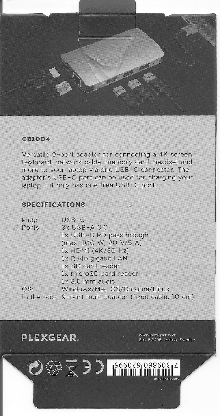Plexgear Multiadapter for USB-C with 9 expansion ports. Click to enlarge.
