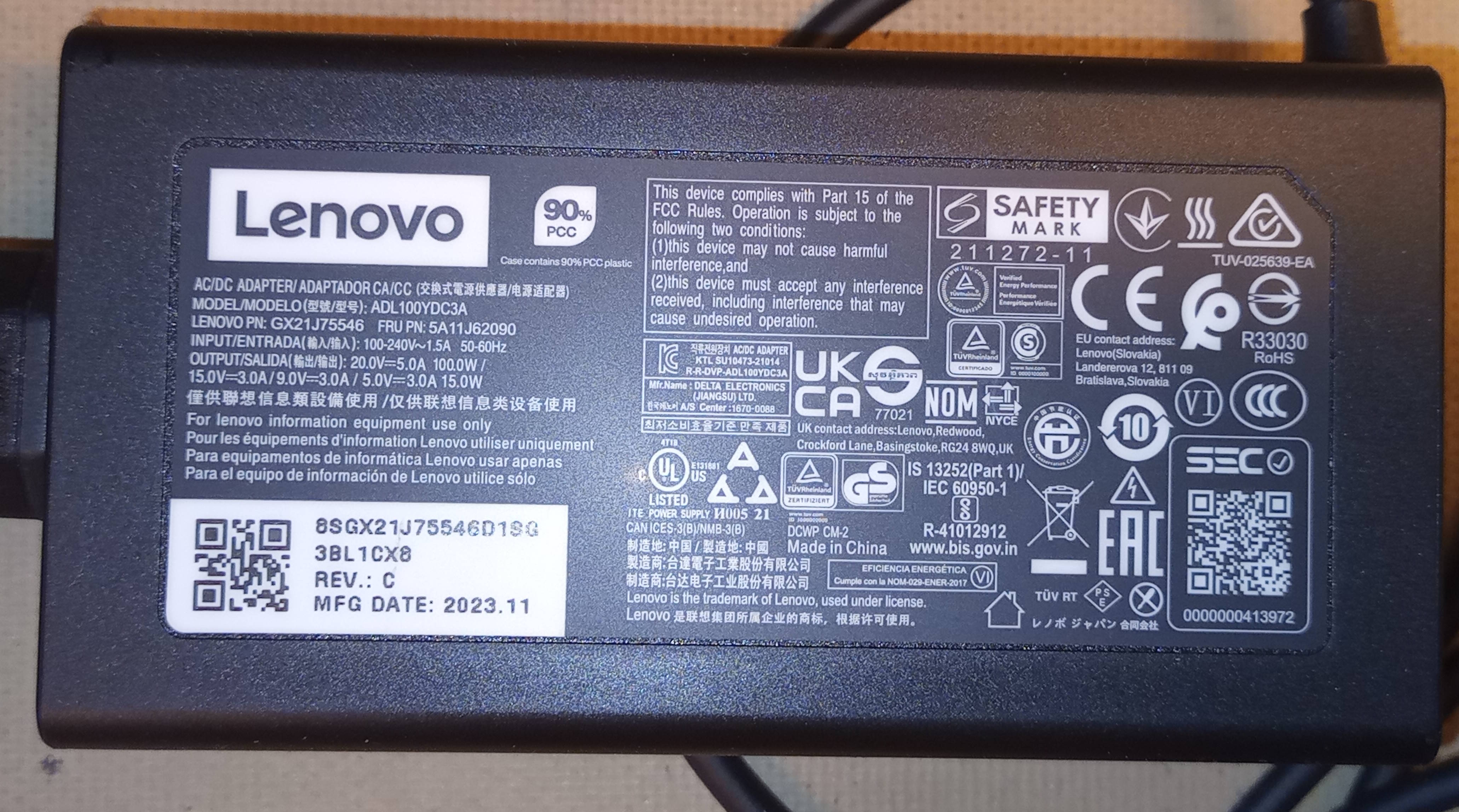 Lenovo mod Yoga Pro 7 Power Supply for 230Vac input. Click to enlarge.