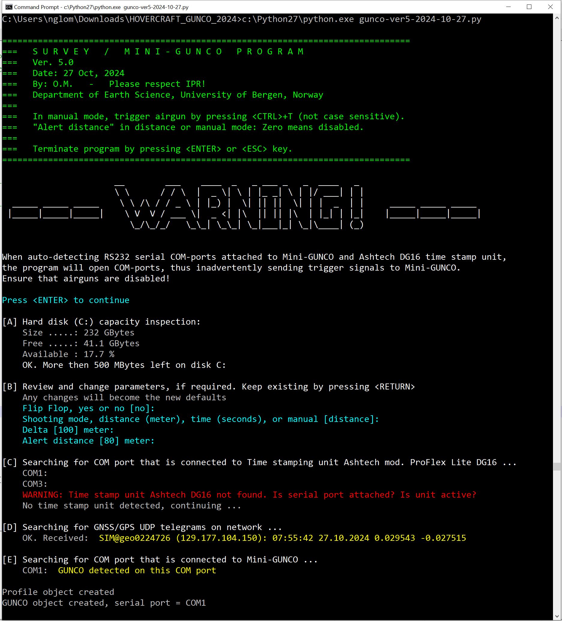 - GEODE recording in the background, merging serial data received from GUNCO program with GEODE log entry so recording number (FFID) can be tied to shotpoint number (otherwise you need to record this information manually in a logbook).