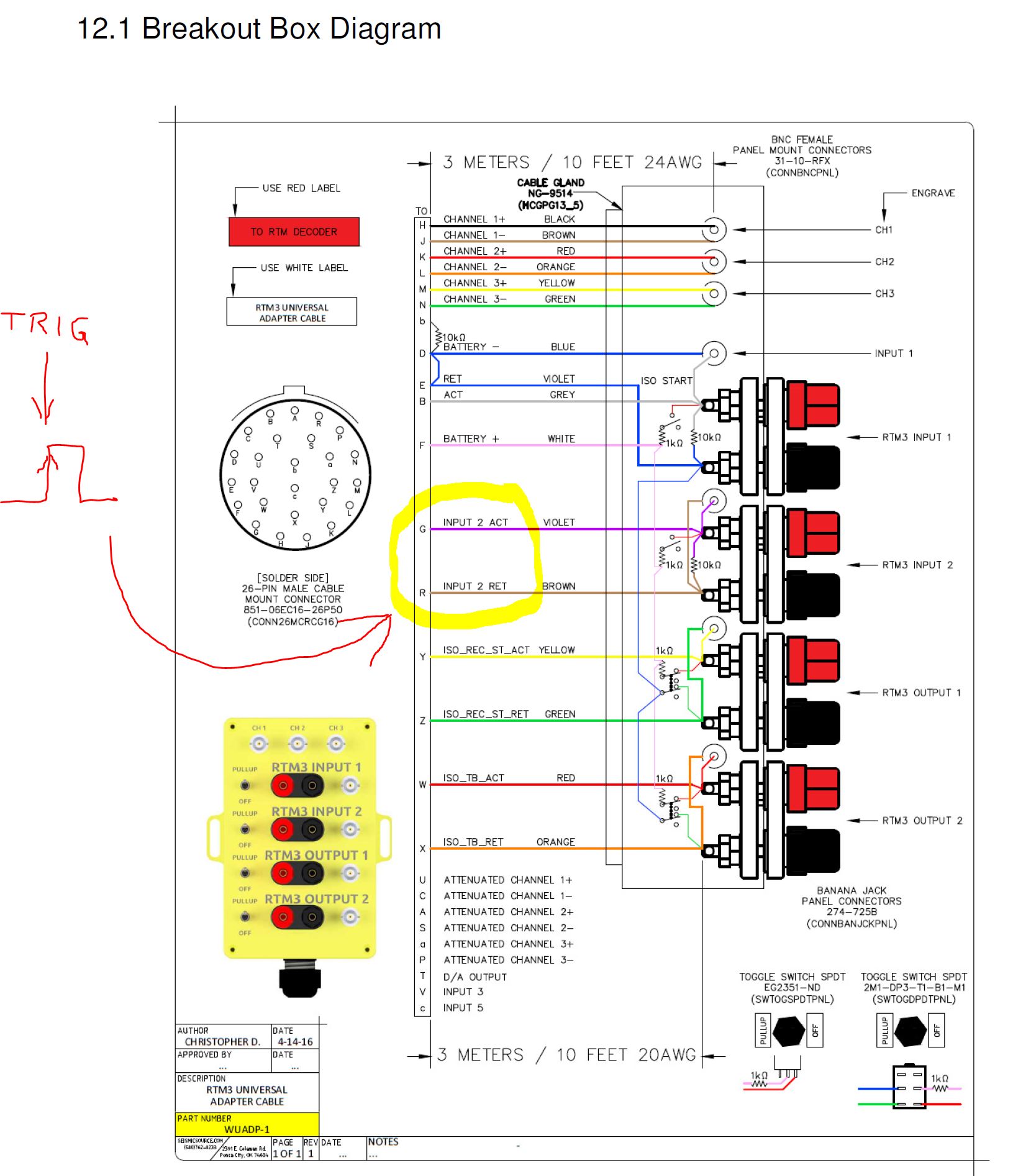 - Trigger Interface cable: Item: 0026960-10 "CBL ASSY, TRIGGER (BNC TO 3-PIN) CO: SN030437